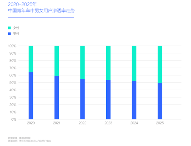 2025 年,超过一半年轻女生买的是纯电动车,比例比几年前翻了好几倍。