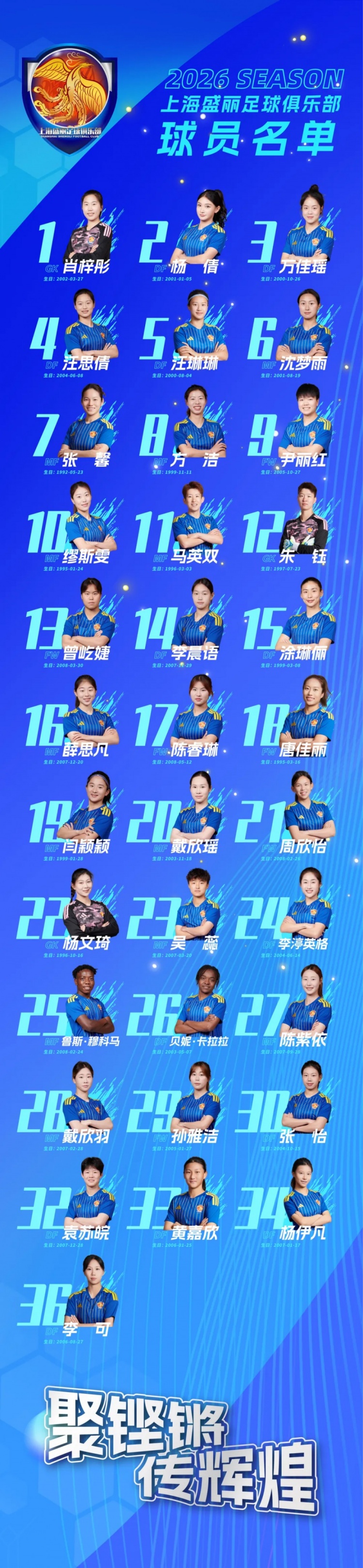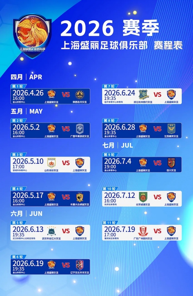 本周末,2026中国足球女子超级联赛就将拉开新赛季的序幕,根据赛程安排,上海盛丽女足将于4月26日坐镇主场,迎战陕西志丹女足。与此同时,球队新赛季参赛名单和完整赛程表也正式出炉,上海女足整装待发,剑指新赛季。